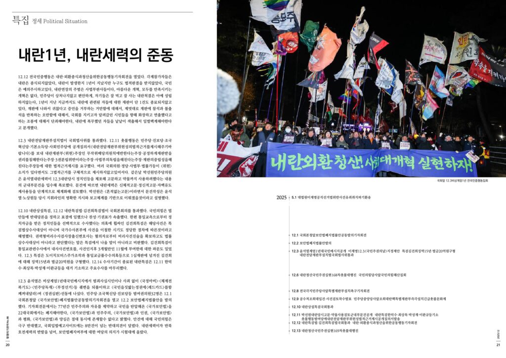 12.3 윤석열은 비상계엄1년대국민메시지에서 범죄사실시인이나 사죄 없이 <국정마비>·<체제전복기도>·<민주당독재>·<부정선거>등 궤변을 되풀이하고 <국민을짓밟는정권에<레드카드>를함께꺼내달라>며 <정권심판>선동에 나섰다. 민주당·조국혁신당·진보당등 범여권의원32명은 12.1 국회본청앞 <국가보안법>폐지법률안공동발의기자회견을 열고 12.2 보안법폐지법률안을 발의했다. 기자회견문에서는 77년간 민주주의와 자유를 제약하고 국민을 탄압해온 <국가보안법>을 22대국회에서는 폐지해야한다, <국가보안법>과 민주주의, <국가보안법>과 인권, <국가보안법>과 평화, <국가보안법>과 양심은 절대 동시에 존재할수 없다고 밝혔다. 안건에 대해 국민의힘은 극구 반대했고, 국회입법예고사이트에는 8만건이 넘는 반대의견이 달렸다. 내란세력이자 반북호전세력의 반발을 넘어, 보안법폐지여부에 대한 여당의 의지가 시험대에 올랐다.
