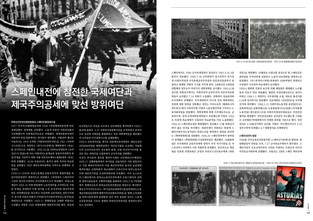 스페인에서는 1930 군사독재정권이 붕괴되고 1931.4.14 2공화국이 선포됐다. 1936.7.18 군부반란이 있기전까지 임시정권·사회주의정권·우익동맹급진주의정부·인민전선정권까지 복잡하고 첨예한 격변의 시기를 거치게 된다. 2공화국은 6개정당연합체의 정부로서 여러가지 개혁정책을 실시했다. 1931.6.28 실시된 의회선거에서는 사회주의자·급진주의자·자유주의공화파들이 승리했고 7.14 의회가 소집됐다. 의회에서 정교분리와 토지개혁이 단행됐다. 우익세력만이 아니라 진보·개혁세력도 정권에 대한 압박을 강화했고 정부는 미국소유의 <텔레포니카네트워크>에서 사보타주를 이끌던 노동조합간부를 구속하고 노동자총파업을 탄압했다. 개혁정책에 반해 지주제토지소유, 금융과두제, 정권·군대내반동세력들이 잔존했는데 이들은 1933초 독일에 파쇼체제가 수립되자 파쇼본색을 더욱 노골화했다. 1933.10 스페인파쇼정당 팔랑헤당이 결성됐고 11월 의회선거에서 많은 의석을 차지했다. 대중투쟁이 격화되는 와중에 스페인사회주의노동자당은 좌경노선을 취하면서 반란을 준비하는 <혁명위원회>를 설립했다. 1934.10 스페인전역에서 총파업이 전개됐고 <혁명위원회>구성원대부분은 체포됐다. 10월총파업은 우익세력과 공동주의세력 양측이 각각 자기기반을 둔 아스투리아스지역에서 가장 격렬하게 전개됐다. 전국적으로 계엄령을 선포한 전쟁장관은 군장성 프란시스코프랑코에게 <반란진압>을 명령했다. 10월중순 프랑코를 중심으로 한 스페인군은 총파업을 무자비하게 진압하고 노동자·진보세력을 대대적으로 탄압했다. <아스투리아스혁명>과정에서 1000여명이 희생되고 수천명이 구속되며 파쇼세력이 승리했다.