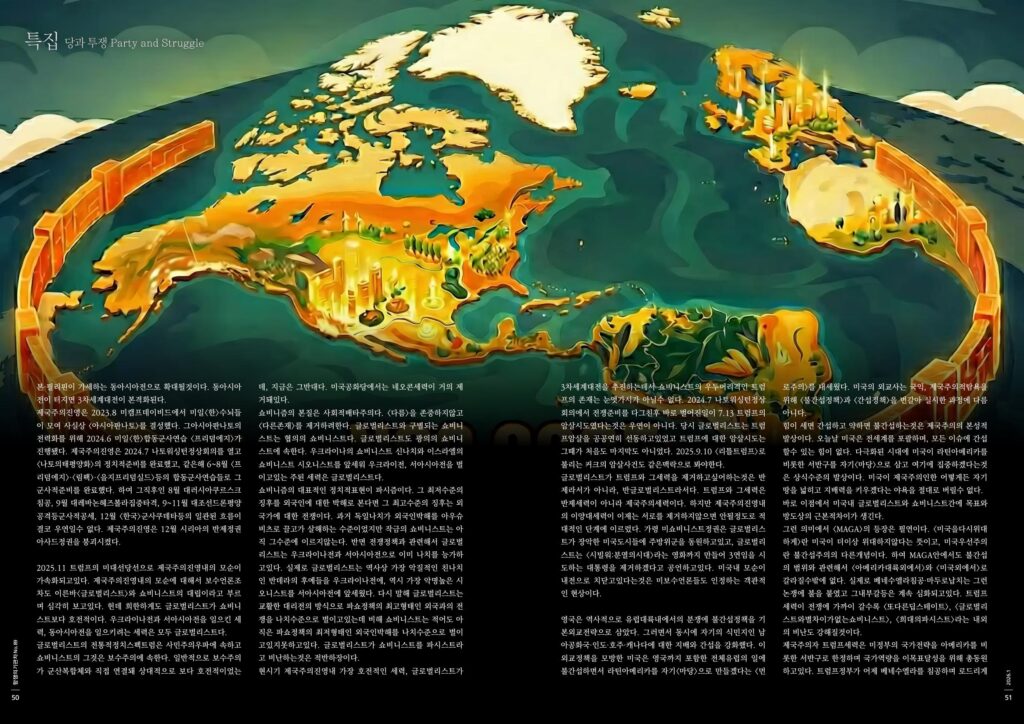 2025.11 트럼프의 미대선당선으로 제국주의진영내의 모순이 가속화되고있다. 제국주의진영내의 모순에 대해서 보수언론조차도 이른바<글로벌리스트>와 쇼비니스트의 대립이라고 부르며 심각히 보고있다. 헌데 희한하게도 글로벌리스트가 쇼비니스트보다 호전적이다. 우크라이나전과 서아시아전을 일으킨 세력, 동아시아전을 일으키려는 세력은 모두 글로벌리스트다.