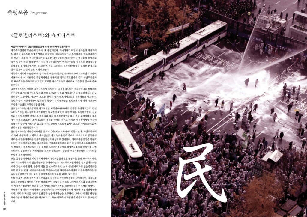 글로벌리스트는 파쇼정책의 최고표현인 외국가(外國家)와의 전쟁을 추진하고있다. 반면 쇼비니스트는 파쇼정책의 최저표현인 외국민(外國民)에 대한 박해를 추진하고있다. 글로벌리스트가 추진한 전쟁은 나치독일과 달리 대리전방식으로 해서 결코 뒤지지않을 수준에서 전개되고있으나 쇼비니스트가 추진한 박해는 적어도 아직은 아우슈비치에 수용해 살해하는 수준에 이르지는 않고있다. 즉, 글로벌리스트가 쇼비니스트를 파시스트라고 비난하는것은 적반하장격이다.