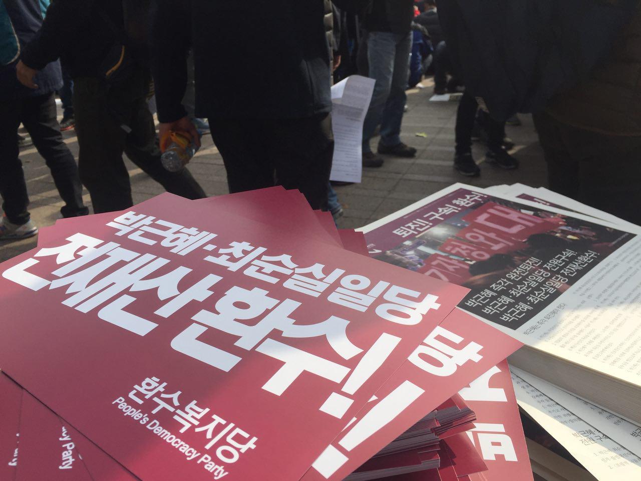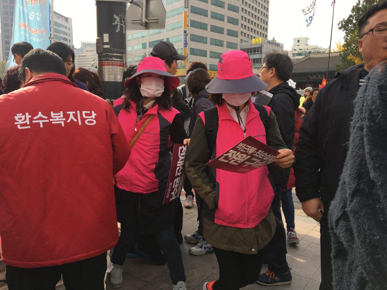 〈제국주의침략국미국규탄! 〈한국〉군파병거부! 주〈한〉미군철거!〉 반미투쟁본부·민중민주당 청와대앞 기자회견