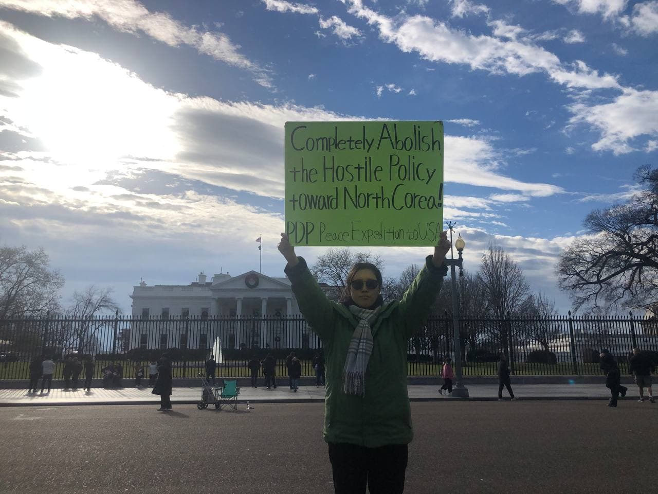 민중민주당(민중당) 미국평화원정단은 25일(현지시간) 워싱턴D.C 백악관앞에서 <제국주의침략군대 미군철거!>, <북침전쟁연습 영구중단!>, <대북적대정책 완전폐기!>, <굴욕적인 미일남동맹 해체!>, <쿠바 내정간섭 즉각 중단!>을 촉구하는 평화시위를 총1681일째 진행했다.