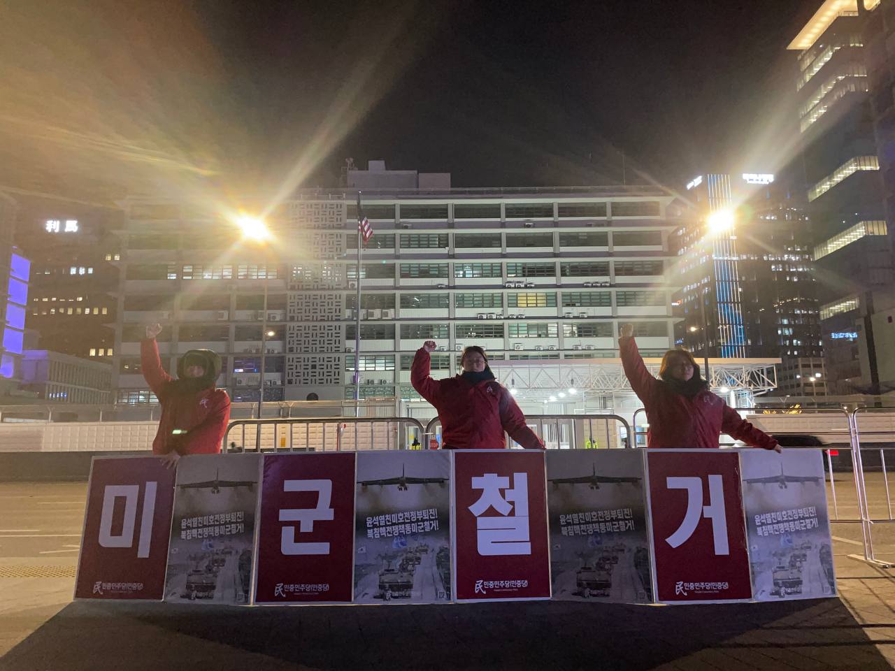 <윤석열친미호전정부퇴진! 북침핵전쟁책동미군철거!> 미대사관앞정당연설회는 1449일째 진행됐다.