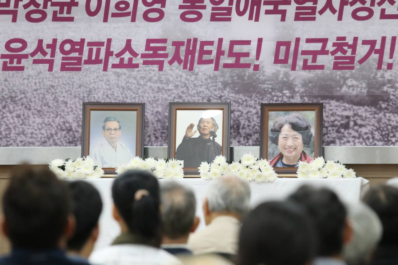 추모사는 <강희남의장, 박창균선생, 이희영선생은 우리의 가슴속에 살아 숨쉬고 있다>며 <세분선생의 신념과 투지는 제국주의미국의 촉수이자 친미파쇼무리의 괴수인 윤석열타도투쟁을 통해서만 되살아날수 있다>고 강조했다.