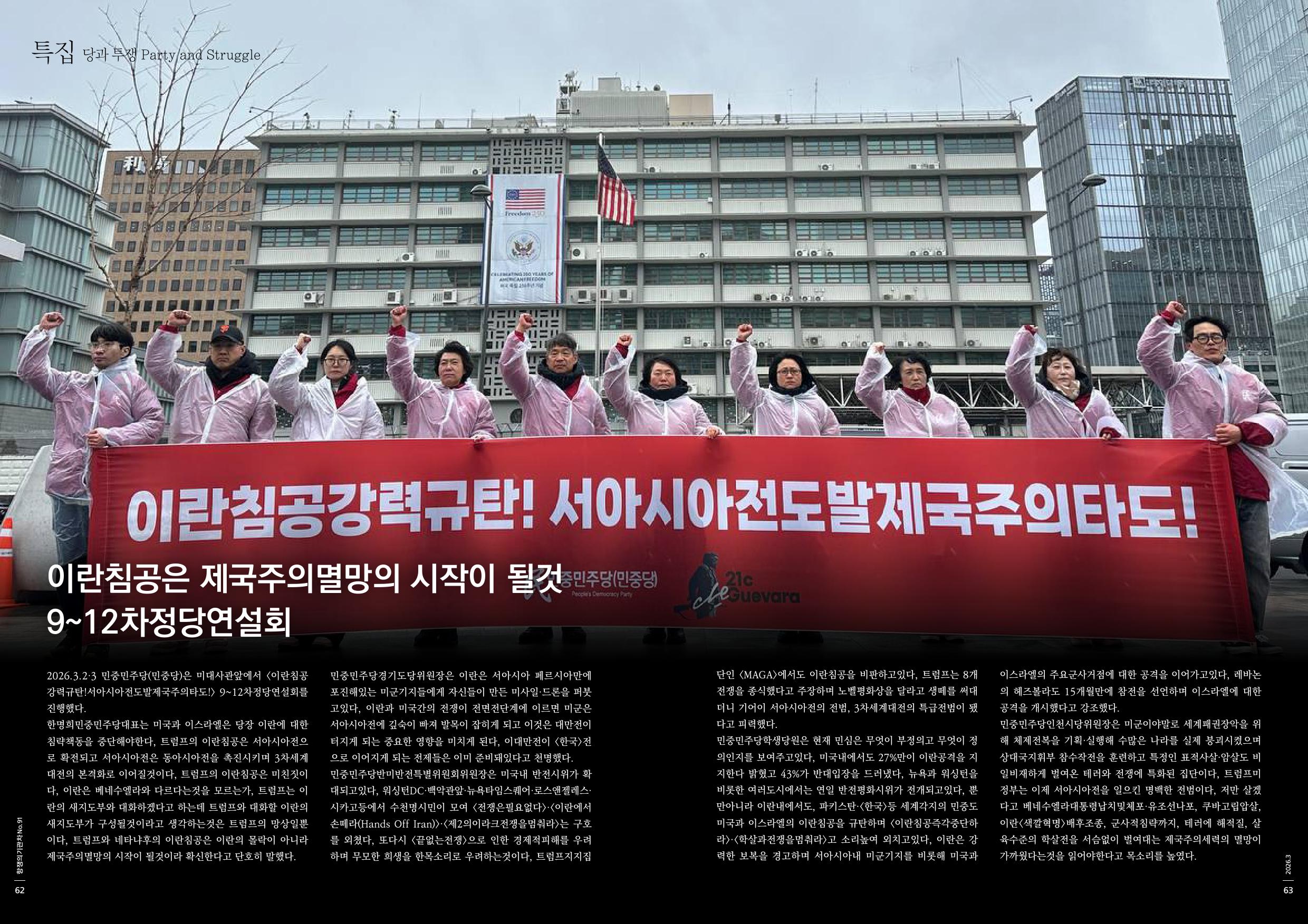 2026.3.2·3 민중민주당(민중당)은 미대사관앞에서 <이란침공강력규탄!서아시아전도발제국주의타도!> 9~12차정당연설회를 진행했다.