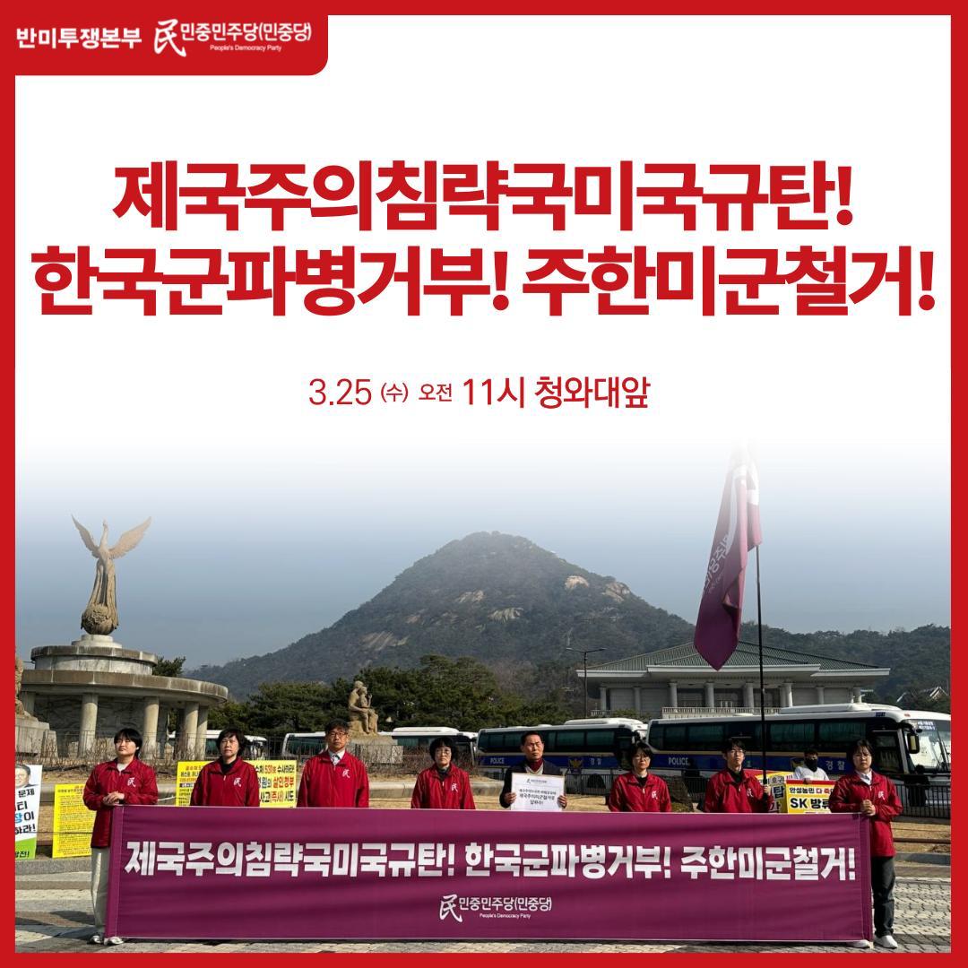 Home 소식 3.25수 11시 청와대앞 〈제국주의침략국미국규탄! 한국군파병거부! 주한미군철거!〉정당연설회
