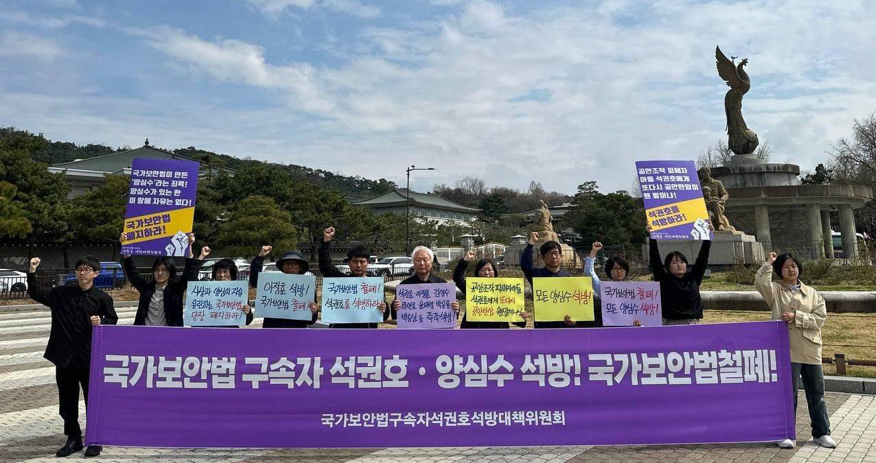Home 실천 연대투쟁 〈국가보안법구속자 석권호·양심수석방! 국가보안법 철폐!〉 석권호석방대책위 청와대앞 기자회견 연대