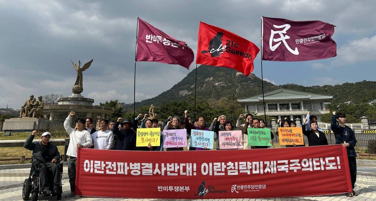 이란전파병을 결사 반대한다. 파쇼호전광 트럼프와 시오니스트전쟁기계 네타냐후가 시작한 이란전 기간동안 이란인은 최소3500명, 레바논인은 최소2000명이 무참히 죽었다. 이스라엘은 이란의 원자력발전소를 공격하면서 페르시아만을 죽음의 땅으로 전변시키고 있으며, 레바논을 공습하며 레반트지역을 장악하기 위해 미쳐날뛰고 있다. 파병을 결정하면 즉각 우리선원들의 생존이 위협받고, 파병을 하면 기뢰와 미사일이 빼곡한 호르무즈해협에서 청년군인들은 결코 살아남을 수 없다. 파병은 탄핵이자 파멸이다. 이재명대통령은 파병을 단호히 거부·반대하고, 나아가 미제침략세력의 침략궤변에 절대 동조하지 말아야 한다. 제국주의가 있는 한 침략과 학살은 끝나지 않는다. 우리민중은 반미반전투쟁에 총분기해 전쟁의 화근 미제침략군대를 철거하고 제국주의를 타도하며 자주와 평화의 새세상을 앞당길 것이다.