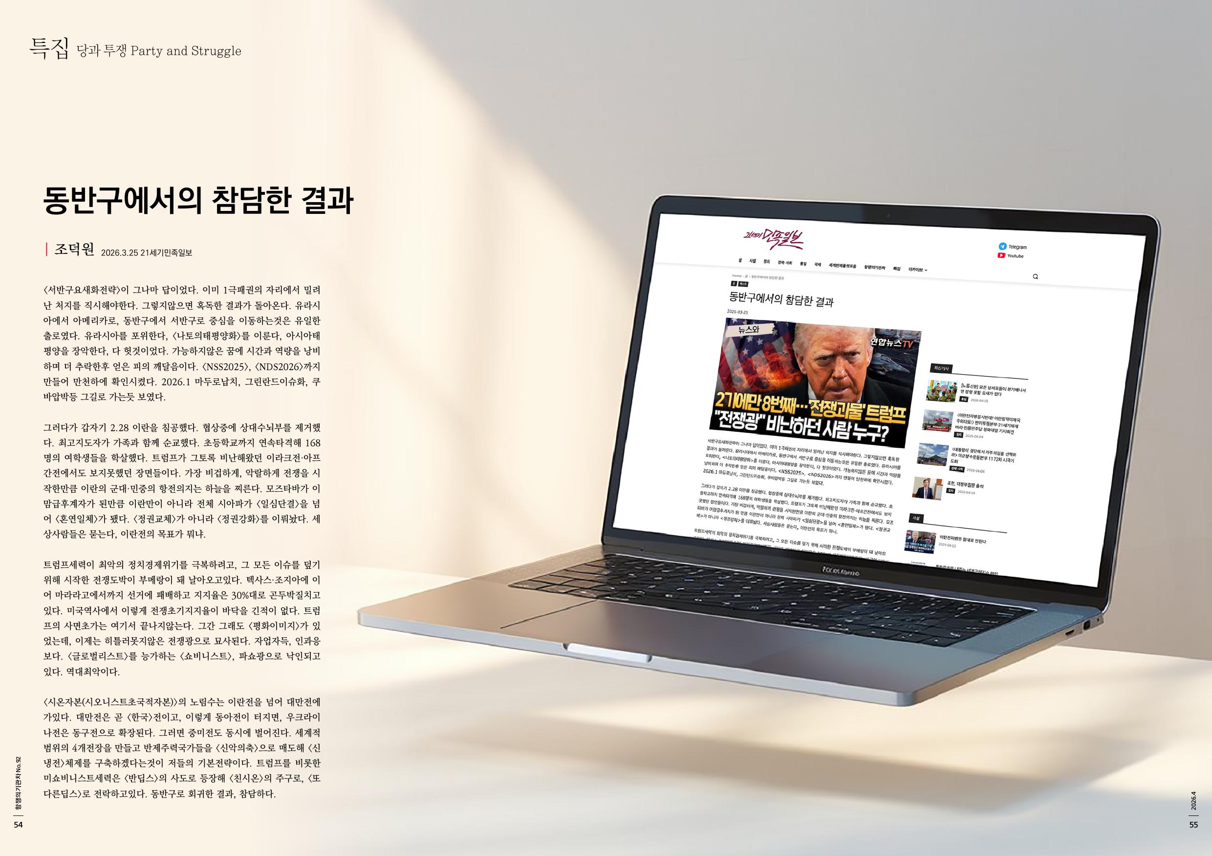 <시온자본(시오니스트초국적자본)>의 노림수는 이란전을 넘어 대만전에 가있다. 대만전은 곧 <한국>전이고, 이렇게 동아전이 터지면, 우크라이나전은 동구전으로 확장된다. 그러면 중미전도 동시에 벌어진다. 세계적범위의 4개전장을 만들고 반제주력국가들을 <신악의축>으로 매도해 <신냉전>체제를 구축하겠다는것이 저들의 기본전략이다. 트럼프를 비롯한 미쇼비니스트세력은 <반딥스>의 사도로 등장해 <친시온>의 주구로, <또다른딥스>로 전락하고있다. 동반구로 회귀한 결과, 참담하다.