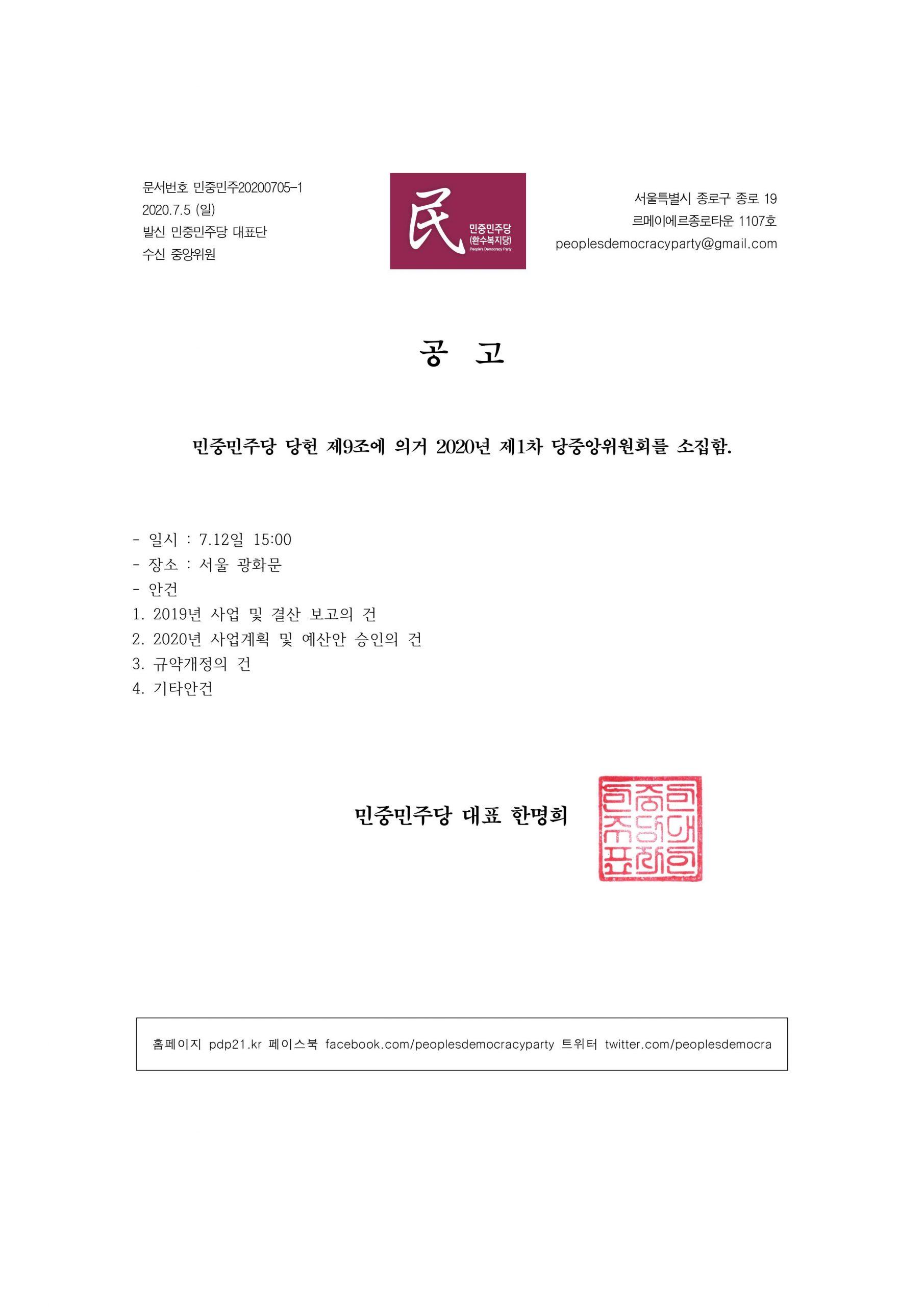 Home 민중민주당 2020년 제1차당중앙위원회 소집
