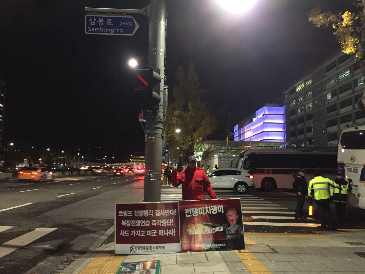 당원들의 미대사관앞 1인시위는 낮과 밤, 맑은 날이나 궂은 날이나 24시간 계속되고 있습니다.