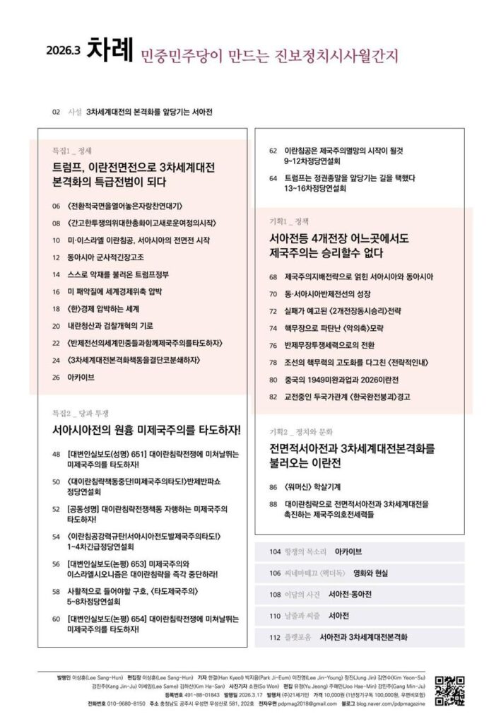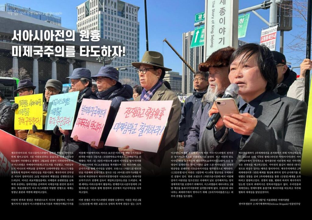 <항쟁의기관차>는 민중민주당(민중당)이 만드는 정치시사월간지다. 윤석열타도투쟁에 앞장선 민중민주당은 반내란정권에서도 공안당국의 파쇼적이고 위헌·위법적인 탄압수사를 받고 있다.