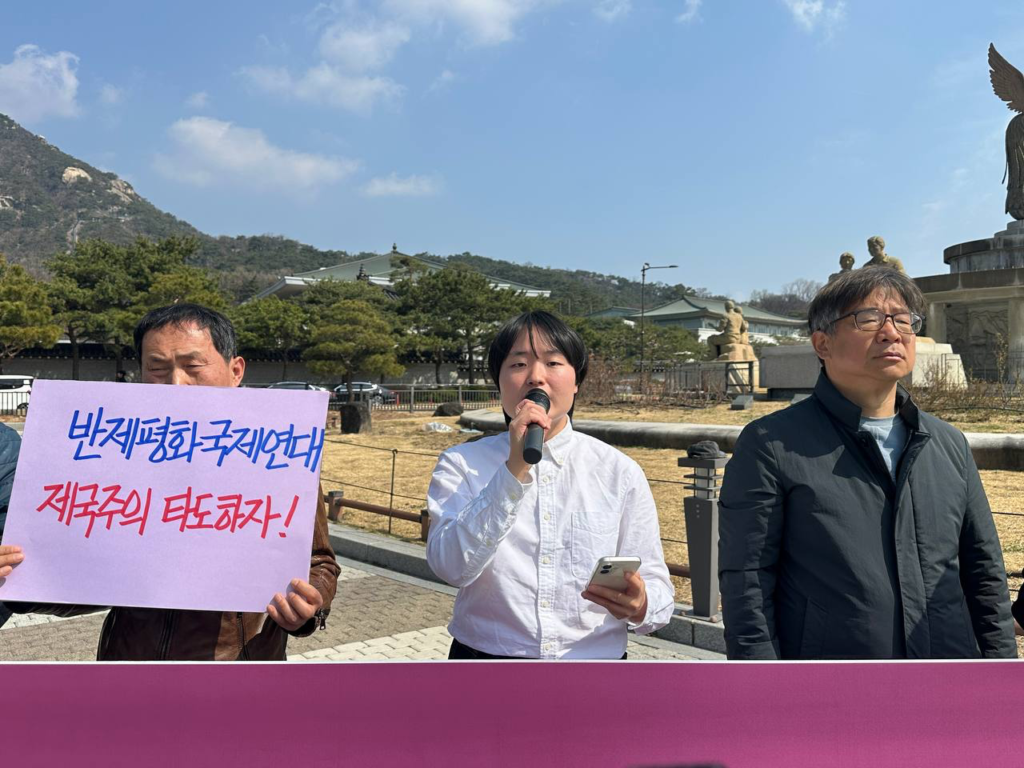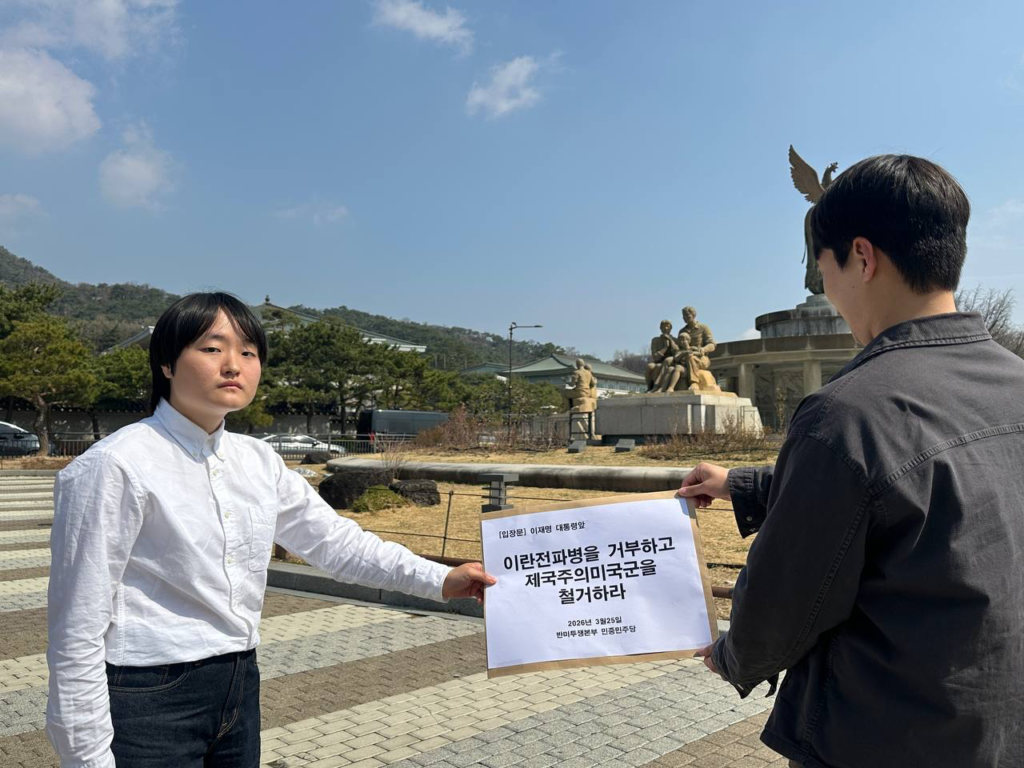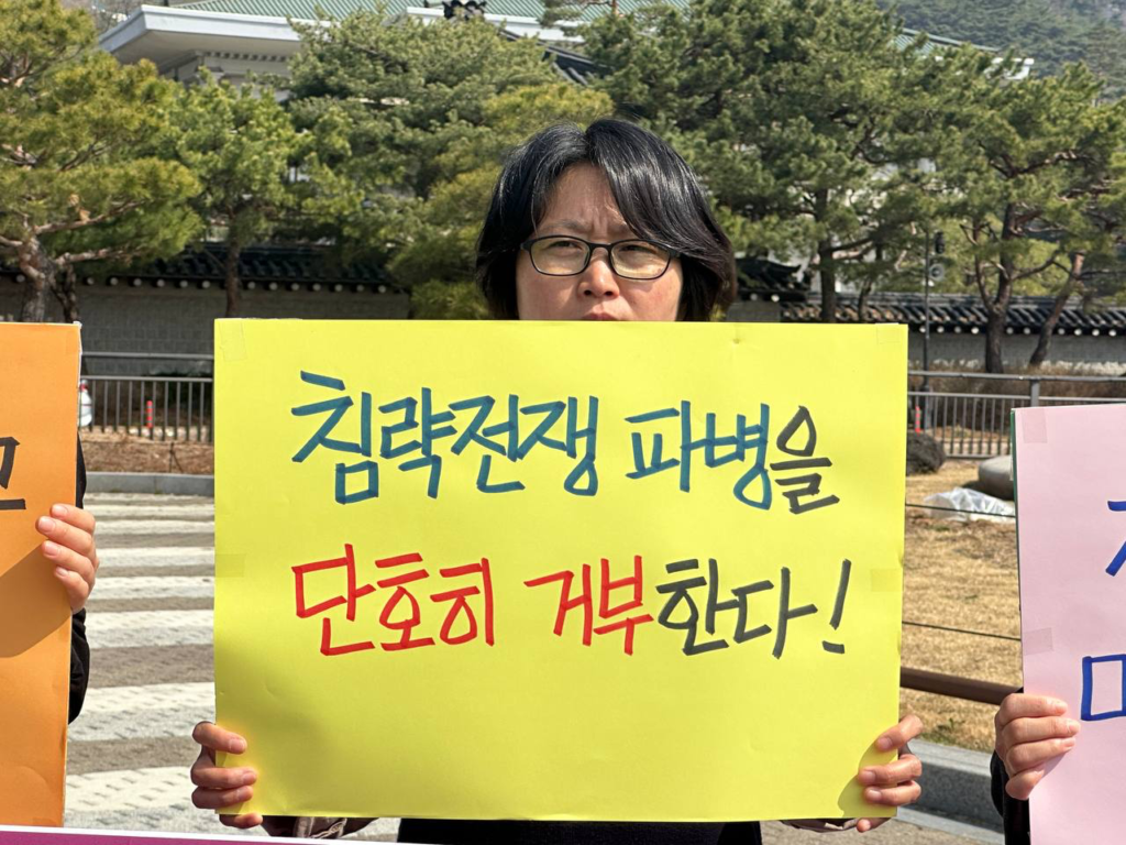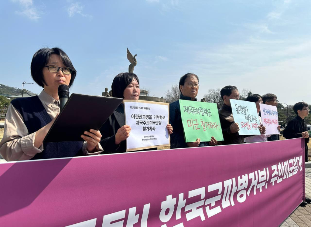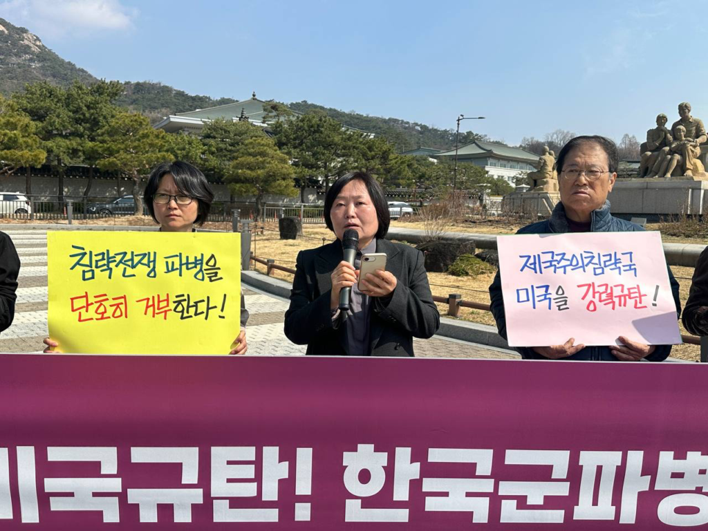 이어 <이 땅 젊은청년들이 파병된다면 어떤 결과를 낳겠는가. 곁에 있는 소중한 친구를, 자녀들을 전쟁의 불구덩이에 끌고가는 것과 다를 바 없다. 이미 우리는 미국의 침략전쟁으로 인한 경제적 피해를 고스란히 입고 있다. <한국>군 파병을 반대한다. 정부는 단호히 파병을 거부해야 한다. 여론조사에 따르면 국민의힘을 제외한 60~70%가 파병에 반대하고 있다. 민심이 어디로 향해 있는가 보여주지 않는가. <한국>의 미래는 우리 청년학생들에게 달려 있다. 우리 청년들을 사지로 몰아넣는 파병은 용납할수 없다.>고 단언했다.