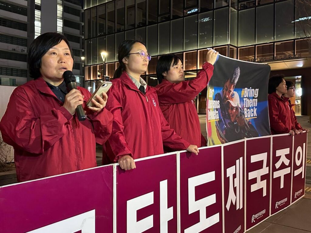 또 <트럼프는 베네수엘라를 침략하고 마두로대통령부부를 불법납치·감금하고 이란을 침공하며 이란의 최고지도자 하메네이를 폭사시키며 정권을 교체하겠다 떠들지만 베네수엘라도 이란도 미국트럼프의 뜻대로 되지않는다는 것을 알아야한다. 여전히 민중들의 힘은 꼬무나로 모아지며 아무리 힘들어도 자신들의 조국을 지키고 평화를 지키기 위해 반제투쟁의 길로 나설 것이라는 것을 트럼프는 무섭게 생각해야 할 것이다. 민중민주당은 베네수엘라민중정권의 지도자 마두로대통령과 저명한 여성활동가 플로레스영부인의 즉각석방을 촉구하며 베네수엘라볼리바르혁명을 지지하는 투쟁을 멈추지 않을 것이다. 전세계민중과 제국주의미국을 타도하는 날까지 힘차게 싸우겠다.>고 결의를 밝혔다.