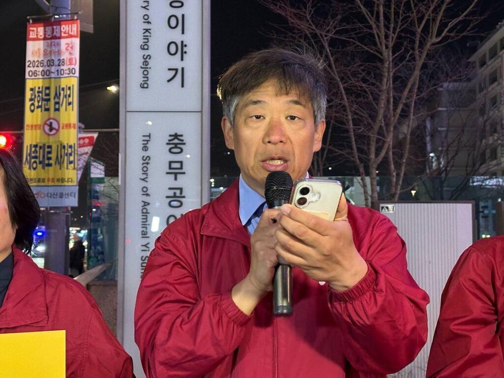 26일 민중민주당(민중당)은 미대사관앞에서 <마두로석방! 볼리바르혁명지지! 제국주의타도!> 3차정당연설회를 진행했다.
