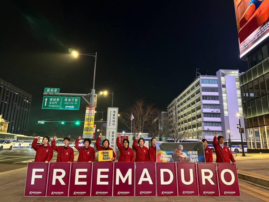 참가자들은 구호 <반제투사 민중지도자 마두로를 석방하라!>, <반제투사 마두로와 플로레스를 석방하라!>, <볼리바르혁명을 강력히 지지한다!>, <침략자 약탈자 미제국주의 타도하자!>, <침략전쟁 학살만행 제국주의 타도하자!>, <반제평화국제연대 제국주의 타도하자!>, <제국주의침략군 미군 철거하라!>, <FREE MADURO! (프리 마두로!)>, <¡MADURO LIBRE! (마두로 리브레!)>, <¡No pasarán! (노 빠싸란!)>, <Victoria Siempre! (Venceremos!)>를 힘차게 외쳤다.