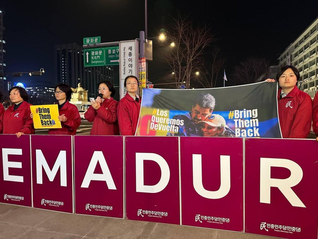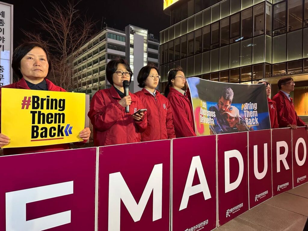민중민주당청년학생당원은 <1월3일 새벽 제국주의미국이 반제민중국가 베네수엘라를 폭격하고 마두로대통령부부를 납치·체포했다. 민간군사시설을 폭격하고 급기야 다수의 군인과 민간인 학살을 서슴없이 자행했다. 이로써 미제국주의의 추악한 실체가 만천하에 드러났다. 미제국주의는 원유·천연자원 약탈을 망발하면서 베네수엘라를 구식민주의적으로 지배하겠다고 악랄하게 떠들고 있지만 베네수엘라정부와 민중들의 입장은 단호하다. <결코 굴복하지 않을 것>, <군민이 하나로 단결해 부술 수 없는 저항의 벽을 세울 것>이라고 선언하고 조국을 목숨처럼 수호하고 있다. 베네수엘라민중들의 결의처럼 제국주의자들은 저항의 벽을 쉽게 통과할 수 없다.>고 강조했다.