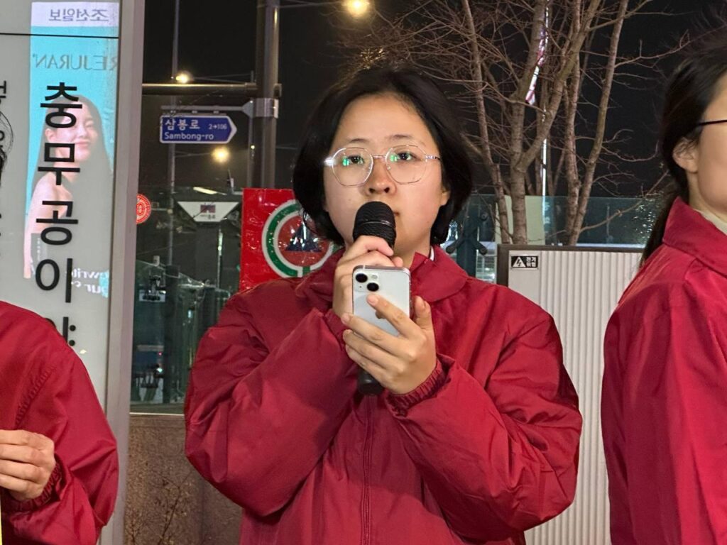 또 <우리는 미제국주의의 침략적 만행을 결코 좌시하지 않을 것이다. 미제가 마두로대통령에게 씌운 <마약 테러> 혐의는 베네수엘라를 침략하기 위한 비겁한 변명에 불과하다. 진정한 테러리스트는 누구인가. 5000만달러(약 723억 원) 현상금을 걸고 한나라의 대통령을 체포하고 영부인까지 강제로 끌고가 변호인 접견조차 방해하며 차가운 감옥에 가두는 자들이야말로 세계 최대의 테러집단이 아닐 수 없다. 미제국주의는 마두로대통령을 감옥에 가둠으로써 라틴아메리카를 말살시키기 위해 발악하지만 라틴아메리카 민중들은 굴함 없이 더욱 한몸처럼 움직이며 조국을 수호하고 있다. 우리 청년학생은 미제의 침략 행위를 결코 좌시하지 않고 함께 투쟁할 것을 결의한다.>고 발언했다.