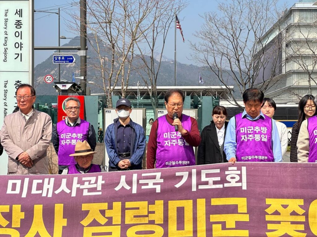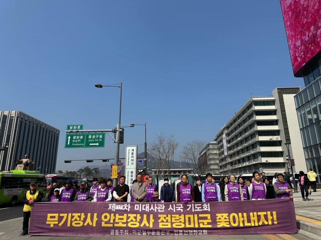 민중민주당(민중당)은 28일 미군철수투쟁본부 주최로 광화문미대사관앞에서 열린 1171차자주통일시국기도회에 참가해 발언했다.