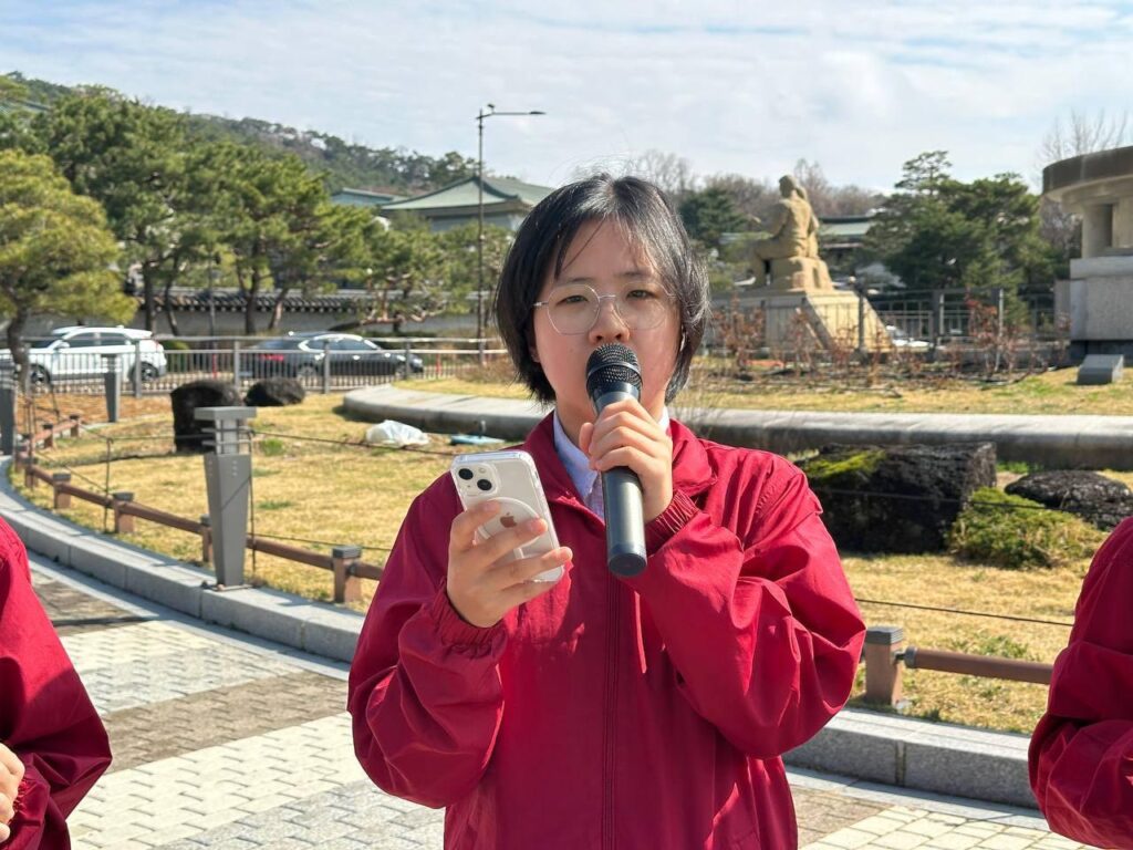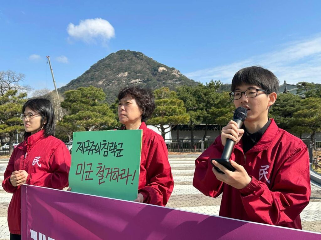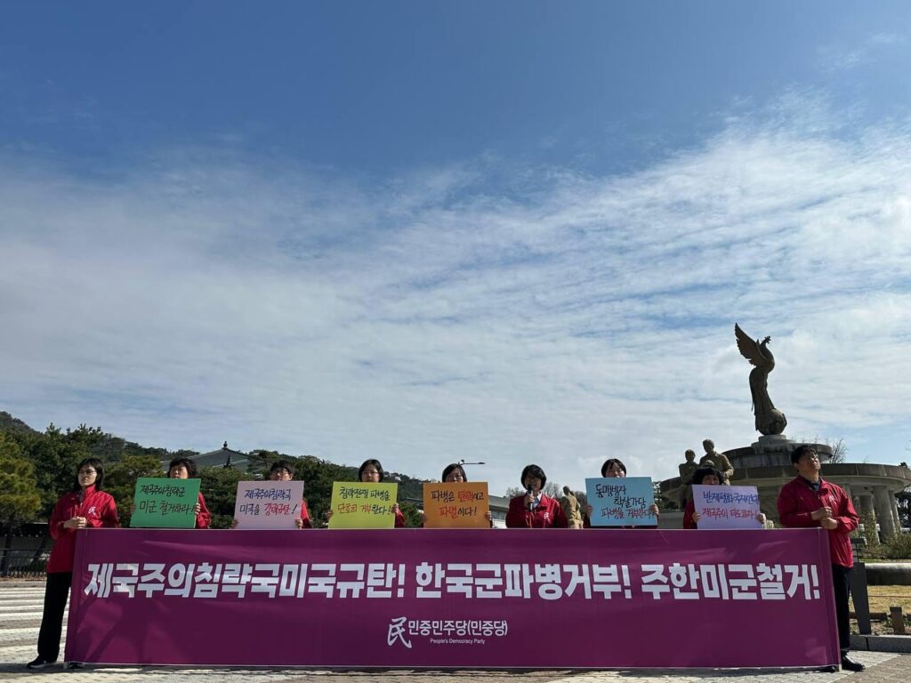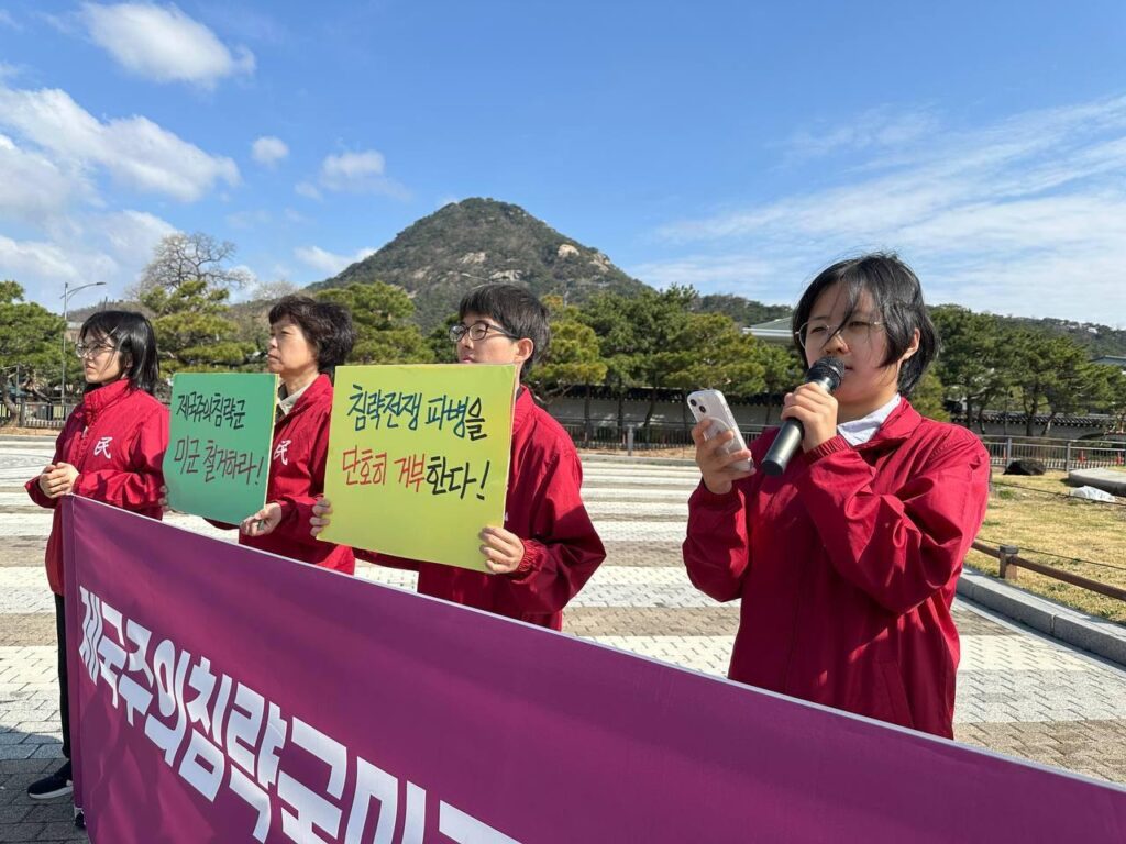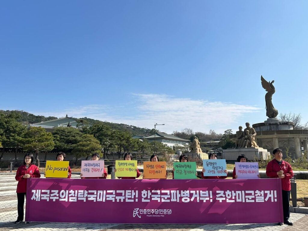 민중민주당청년학생당원은 <사면초가에 처한 제국주의침략세력은 전세계에 침략의 총칼을 무자비하게 휘두르고 있다. 우리는 <한국>군 파병을 강력히 거부한다. <한국>은 침략전쟁에 가세하지 말아야 한다. 또한 시민사회단체와 대학가에서도 파병반대운동이 빠르게 확산되고 있다. 그럼에도 이재명정부는 미국눈치를 보며 분명한 입장을 취하지 않고 있다.>며 <이란지도부와 여학생들을 무참히 살육한 자들이 누구인가. 무고한 민중들을 희생한 것도 모자라 <한국>군 파병을 운운하며 호르무즈해협개방을 압박하고 있는 트럼프정부를 강력히 규탄한다.>고 발언했다.