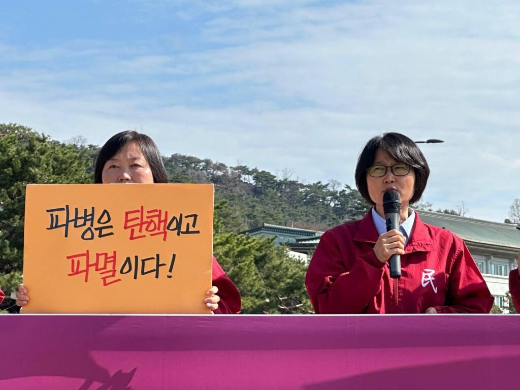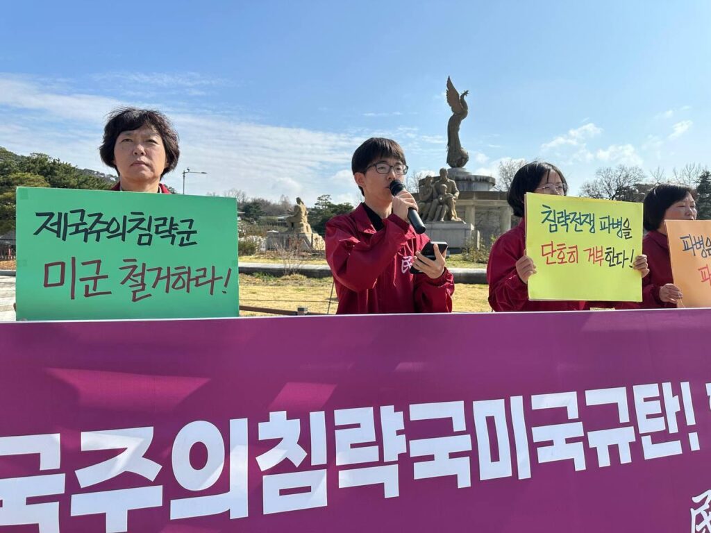 이어 <<한국>군 파병은 위헌이다. 헌법5조에 따르면 <침략적 전쟁을 부인한다>고 명시되어 있다. 헌법상 <한국>이 먼저 다른나라에 공격을 가하거나 정당한 이유없이 개입해 공격을 돕는 것은 금지되어 있다. 2000년이후부터 전투목적파병은 없었다. 대통령은 자국민중의 운명을 책임져야할 의무가 있다. 전세계에서 일어나고 있는 반이란전집회와 전쟁초기 트럼프의 지지율은 민심이 어디로 향해있는가를 보여준다. 이재명정부가 파병을 결정할시 탄핵을 모면하지 못할 것이다. 파병결정은 침략전쟁에 부역하는 행위이며 우리민중을 전쟁의 화염구로 몰아넣는 행위다. 미제국주의가 압박하는 <한국>군 파병에 우리민중들과 함께 반미반제항쟁으로 맞설 것이다.고 목소리를 높였다.