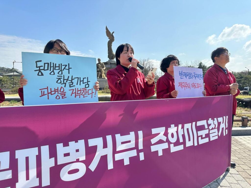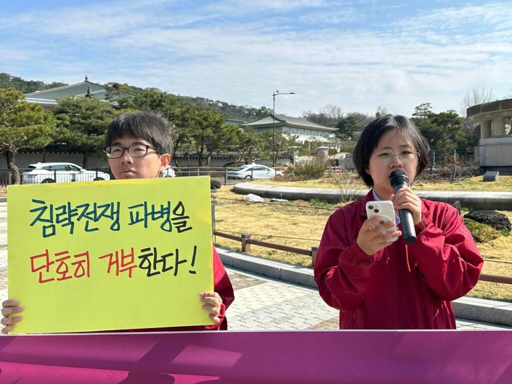 이어 <17~21일 사이 국내3개기관여론조사에서 모두 과반수이상이 파병에 반대한다고 답했다. 또한 지난 24일부터 진행중인 이란전 중단과 파병반대 국회청원에 30일 기준 9,000명이 넘는 이들이 동의했다. 이는 민심이 파병을 반대하고 있음을 똑똑히 보여준다. 특히 남성청년들은 파병시 위험을 감당해야할 세대로서, 이른바 <외교적 실익>이나 <<한>미동맹>이라는 명분아래 침략전쟁의 희생양이 되는 것을 거부하고 있다. 파병을 한다면 침략전쟁을 일으키고 또 침몰하고 있는 제국주의미국과 같은 길을 가게될 것이다. 우리는 파병을 반대하고 이재명정부가 파병요구를 단호히 거부할 것을 강력히 촉구한다.>고 힘줘 말했다.